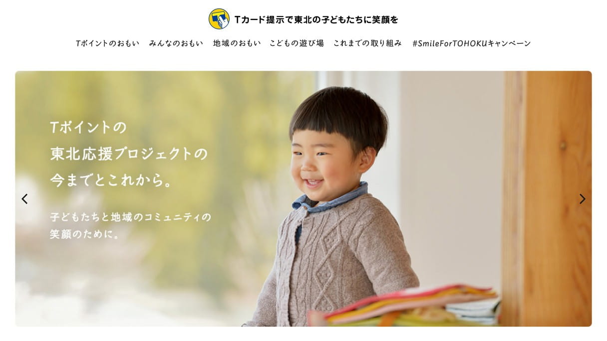 Tポイントの東北復興支援「Tカード提示で被災地の子どもたちに笑顔を」サイトを制作させていただきました。