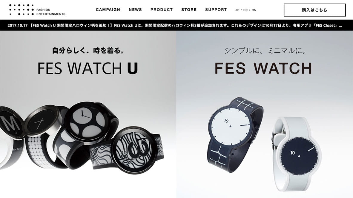 On the website, we introduce new fashion items, the ‘FES Watch’ and ‘FES Watch U’, maximising the